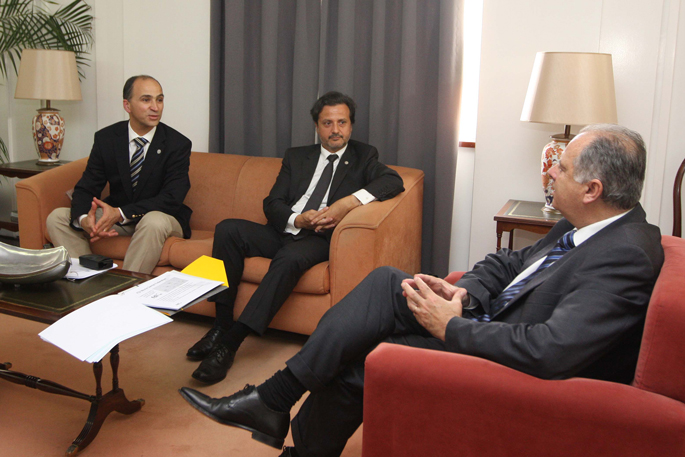 Reunião com o secretário Regional dos Assuntos Sociais, Francisco Jardim Ramos (à direita), em maio de 2011. À esquerda, o representante da Região Autónoma da Madeira no Conselho Diretivo da OMD, Gil Fernandes Alves; ao centro, o bastonário da OMD, Orlando Monteiro da Silva.