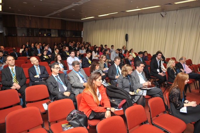Sala da sessão integrada nos temas socioprofissionais do congresso, com acesso livre para médicos dentistas.