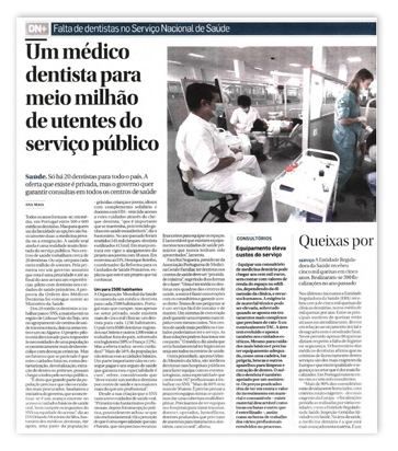 O Diário de Notícias sublinha que “a Organização Mundial da Saúde recomenda um médico dentista para cada 2500 habitantes. Portugal mais que cumpre, mas apenas no setor privado, onde existem mais de cinco mil clínicas: um dentista para cada 1236 habitantes. O país tem 8500 dentistas registados na Ordem e outros 1200 estão a trabalhar fora do país, sobretudo em Inglaterra (59%) e França (12%) ”.