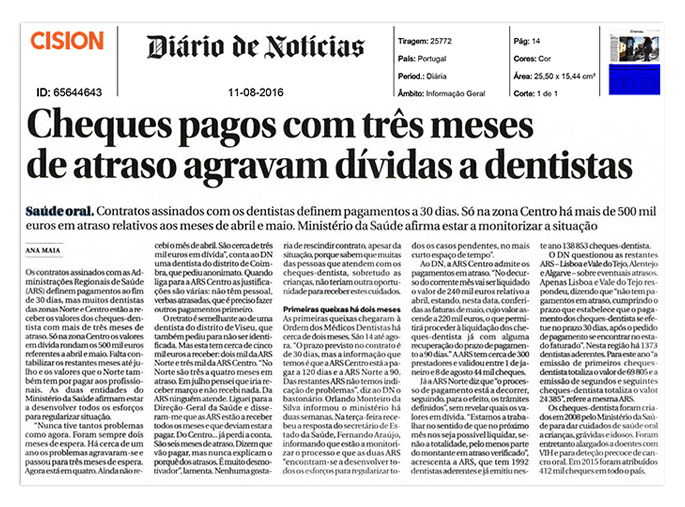Consulte um artigo que o Diário de Notícia publicou sobre os pagamentos do cheque dentista: