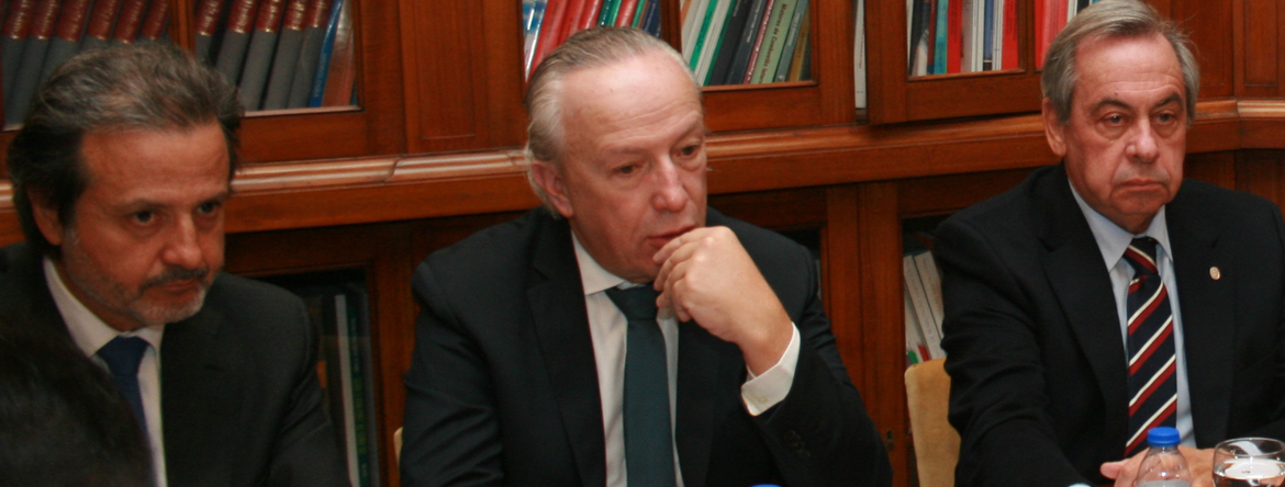 Da esquerda para a direita, Orlando Monteiro da Silva, presidente do CNOP e bastonário da Ordem dos Médicos Dentistas, Pedro Santana Lopes, candidato à liderança do PSD, e Carlos Mineiro Aires, bastonário da Ordem dos Engenheiros.