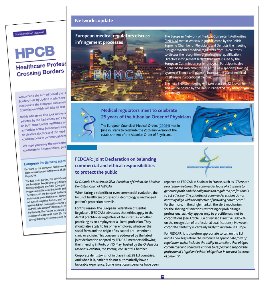 A newsletter dos Profissionais de Saúde Transfronteiriços (Healthcare Professionals Crossing Borders – HPCB) – uma parceria informal de reguladores de profissionais de saúde da Europa, que trabalham de forma colaborativa em várias questões regulatórias – dá relevo ao encontro da Federação Europeia dos Reguladores da Medicina Dentária (FEDCAR), que aconteceu em maio, no Porto.