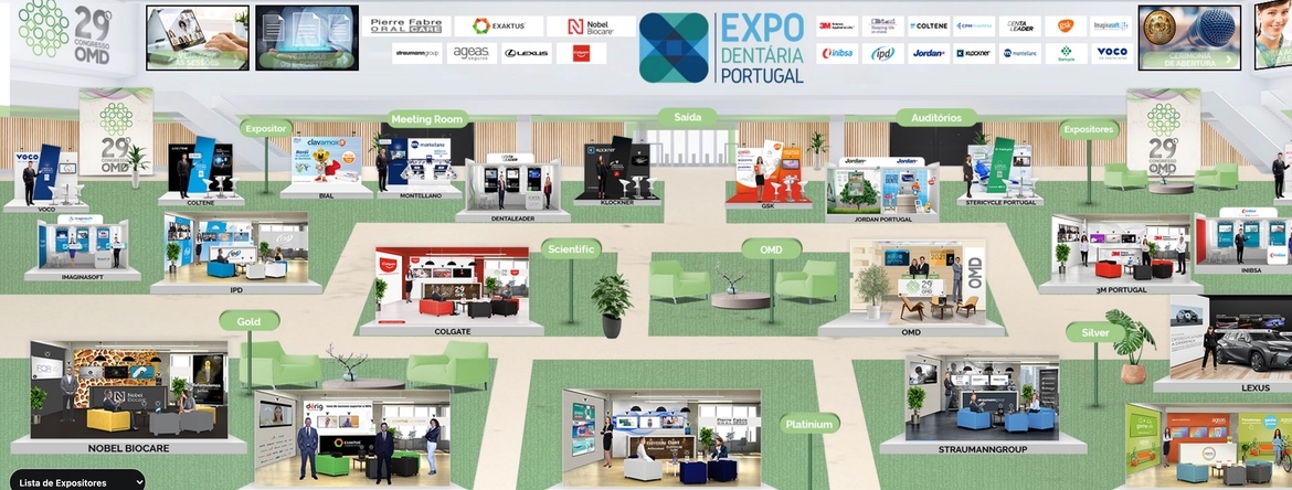 Os stands ganham vida num showroom virtual que proporciona aos visitantes uma experiência imersiva. Também os expositores se adaptaram ao desafio de erguerem espaços interativos e com todas as possibilidades disponibilizadas no contacto presencial. Assim, ao entrar na Expodentária, encontra um universo de oportunidades de contacto com a indústria.