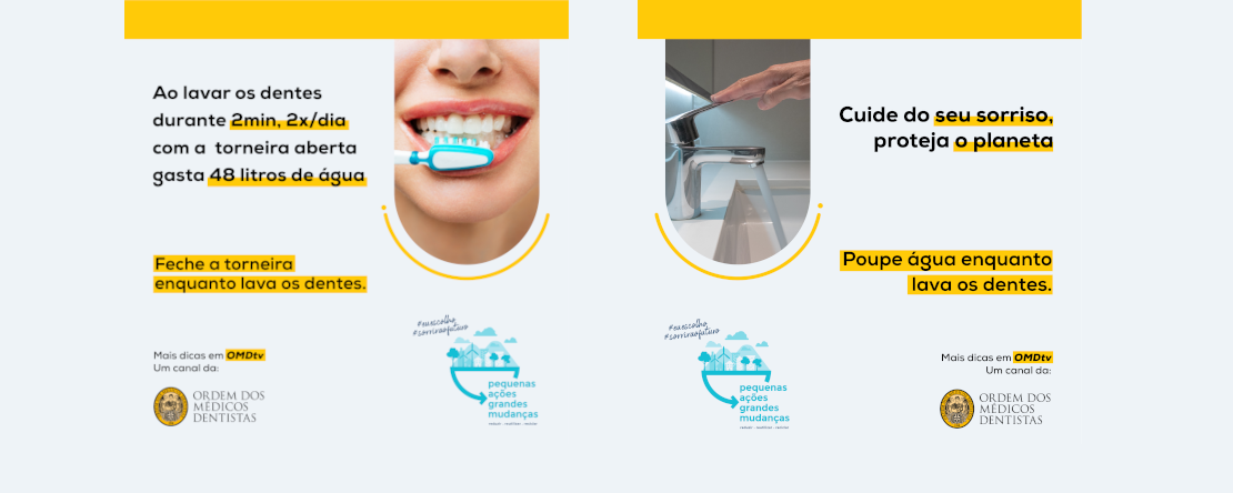 A campanha alerta não só para o desperdício de água, mas também para a regra de ouro de uma boa saúde oral: a fórmula 2×2 – lavar os dentes durante dois minutos, pelo menos duas vezes por dia.