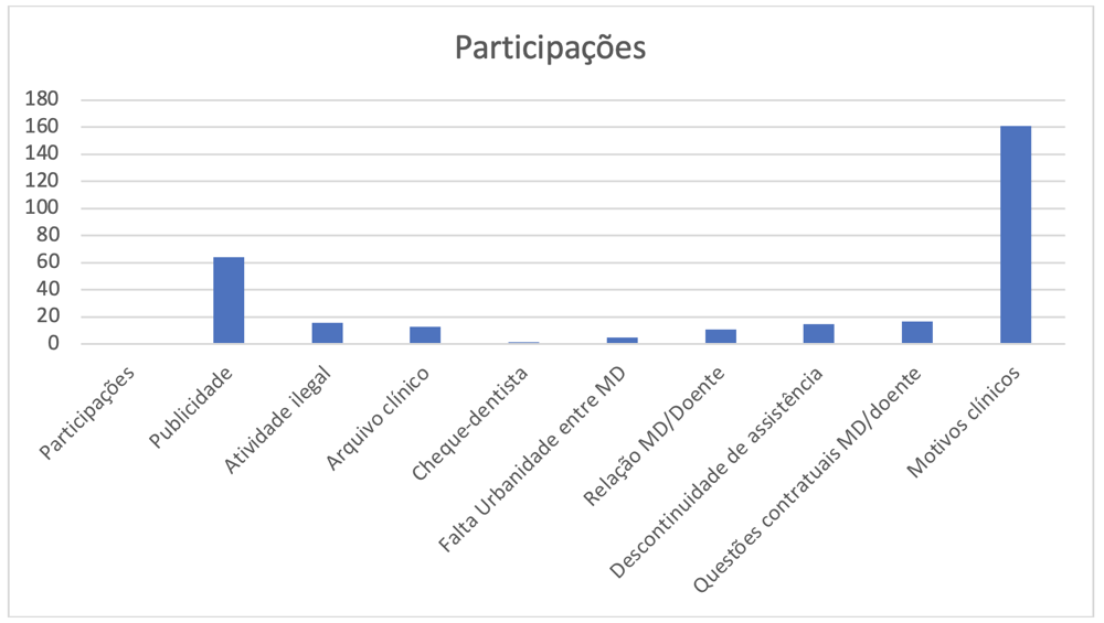Neste quadro, durante o ano de 2022, foram registadas no CDD 192 participações disciplinares, na sua grande maioria apresentadas por doentes e relacionadas com a atividade clínica do médico dentista.