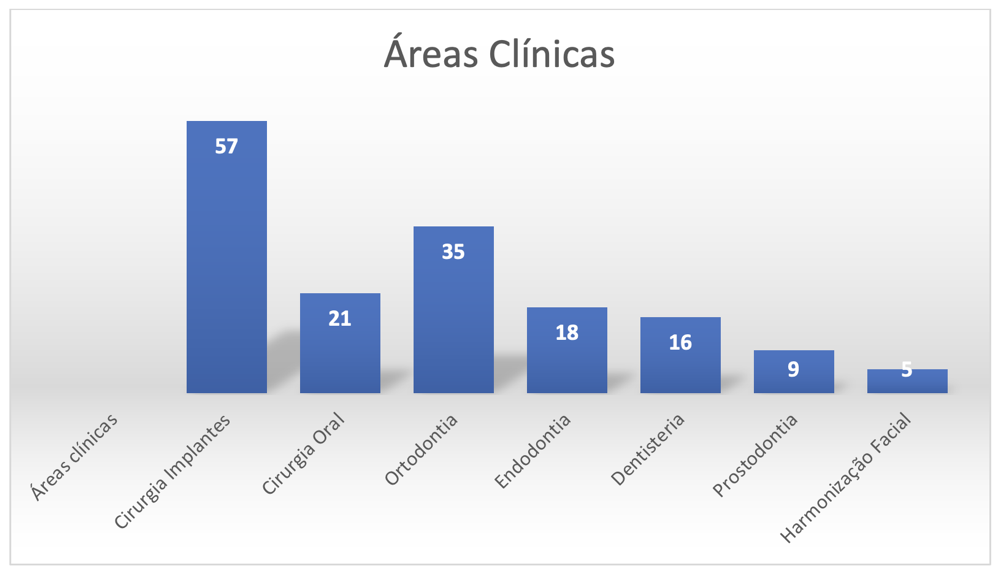 Se nos centramos nas reclamações realizadas pelos doentes, verificamos que, quando se trata de motivos clínicos, as áreas clínicas principais em que incidiram foram especialmente as da cirurgia e da ortodontia, não podendo deixar de realçar a da harmonização facial, como área nova de objeto da reclamação.