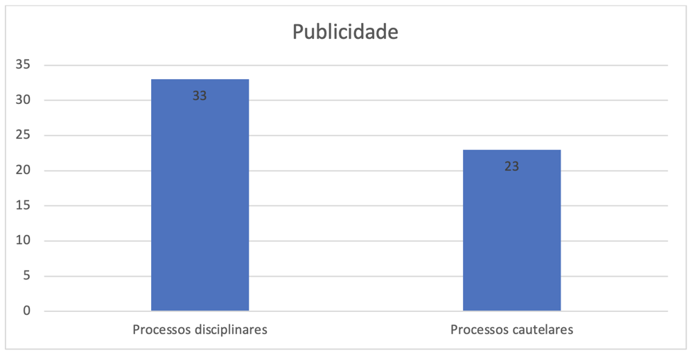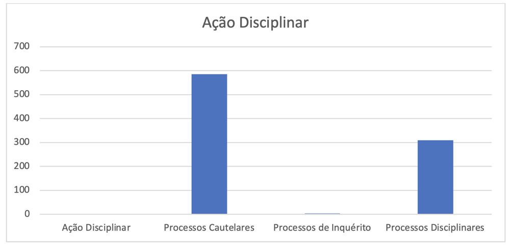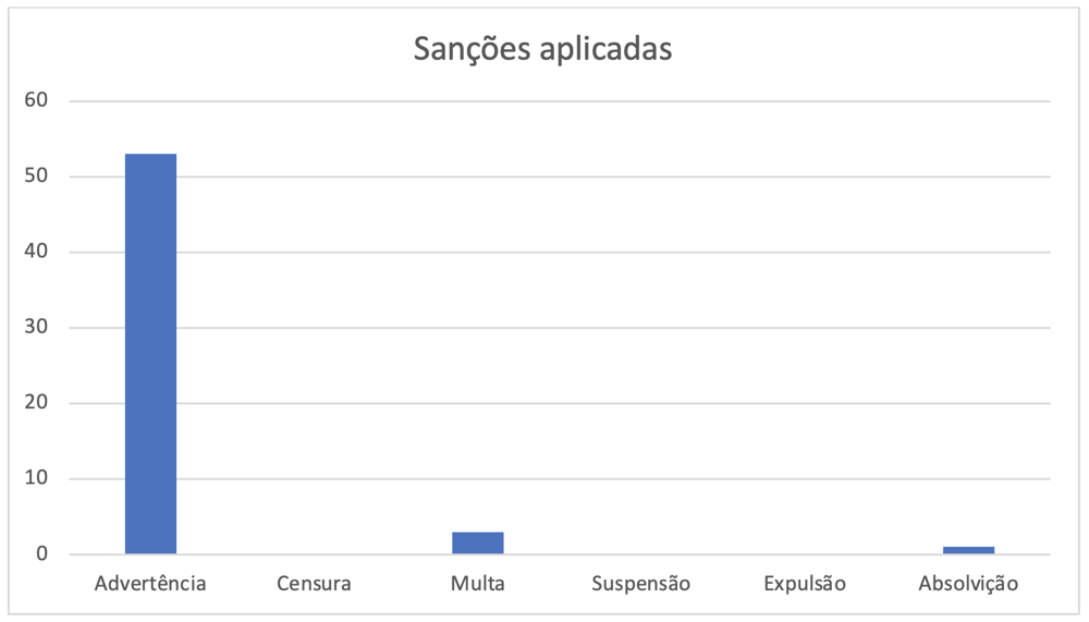 No ano de 2022, resultaram da ação disciplinar desenvolvida o encerramento de 107 processos disciplinares, dos quais 50 foram arquivados e foram aplicadas 53 sanções de advertência, três de multa e uma absolvição.