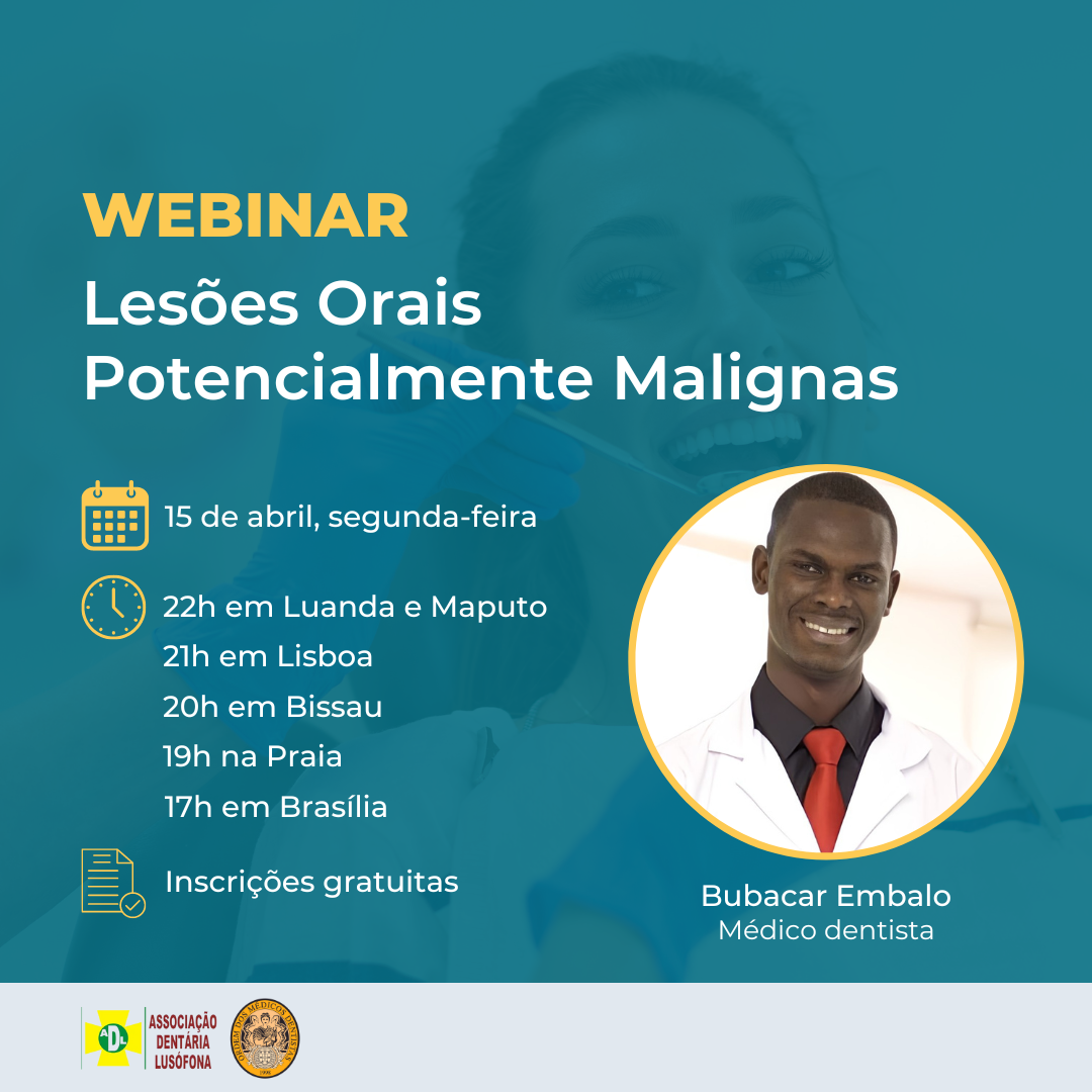 “Lesões orais potencialmente malignas” é o tema desta segunda formação, que será ministrada pelo médico dentista guineense Bubacar Embalo. A sessão realiza-se no dia 15 de abril, segunda-feira, e tem inscrição gratuita.