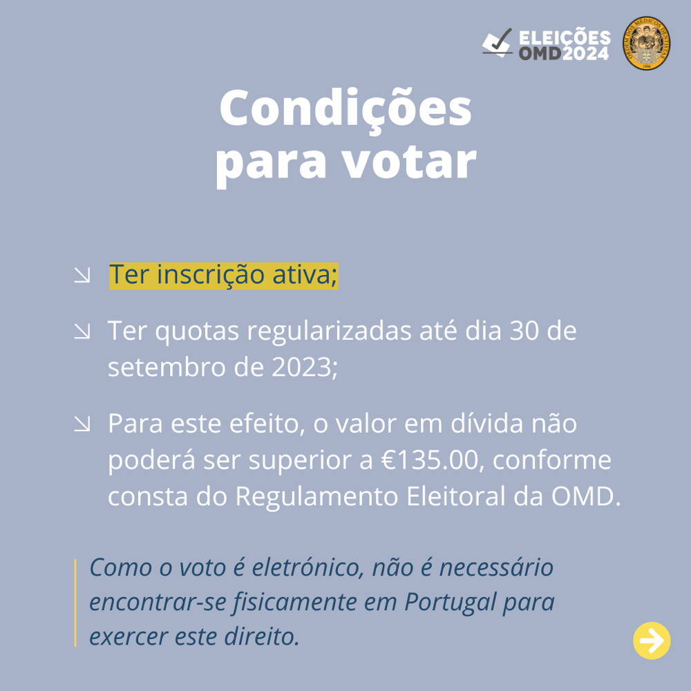 Para esclarecimentos adicionais contacte a OMD através do e-mail eleicoes@omd.pt.