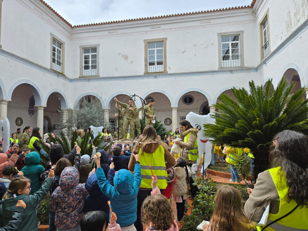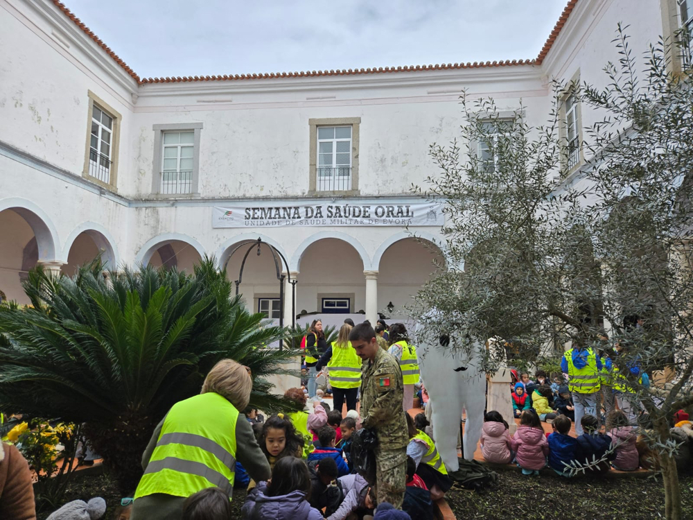 Na manhã de 20 de março, o bastonário Miguel Pavão e a representante da Região Autónoma dos Açores no Conselho Diretivo da OMD, Joana Morais Ribeiro, participaram na iniciativa da Unidade de Saúde Militar de Évora (USME), que juntou cerca de 400 crianças de vários colégios e jardins de infância da cidade. Entre as atividades desenvolvidas com os mais novos, destaque para os rastreios dentários, a decoração in situ do “mural da saúde oral” e a sessão coletiva de escovagem de dentes. Estas atividades de educação para a saúde e higiene oral integraram o programa da Semana da Saúde Oral, organizada por aquela instituição militar que, habitualmente, a propósito desta efeméride, abre as suas portas à comunidade civil.
