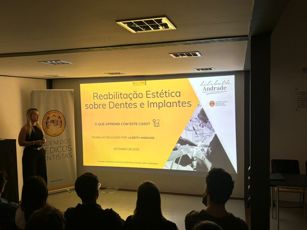Alex Gouveia Luz e Joana Vieira abordaram casos clínicos de reabilitação de um único dente central, um dos grandes desafios da medicina dentária restauradora. As suas apresentações destacaram a importância do workflow digital e do registo fotográfico para o sucesso do tratamento, bem como a gestão das emoções e expectativas dos pacientes.