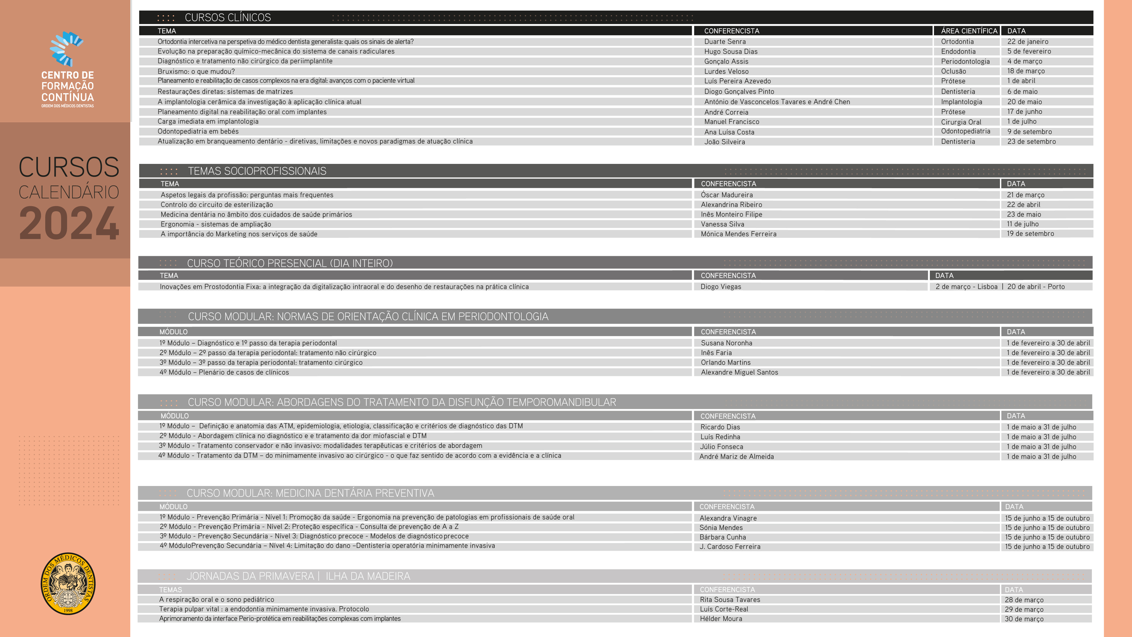 Cursos de 2024 Consultar o programa de formação contínua de 2024 (pdf) Consultar as páginas individuais dos cursos com resumos e formulários de inscrição