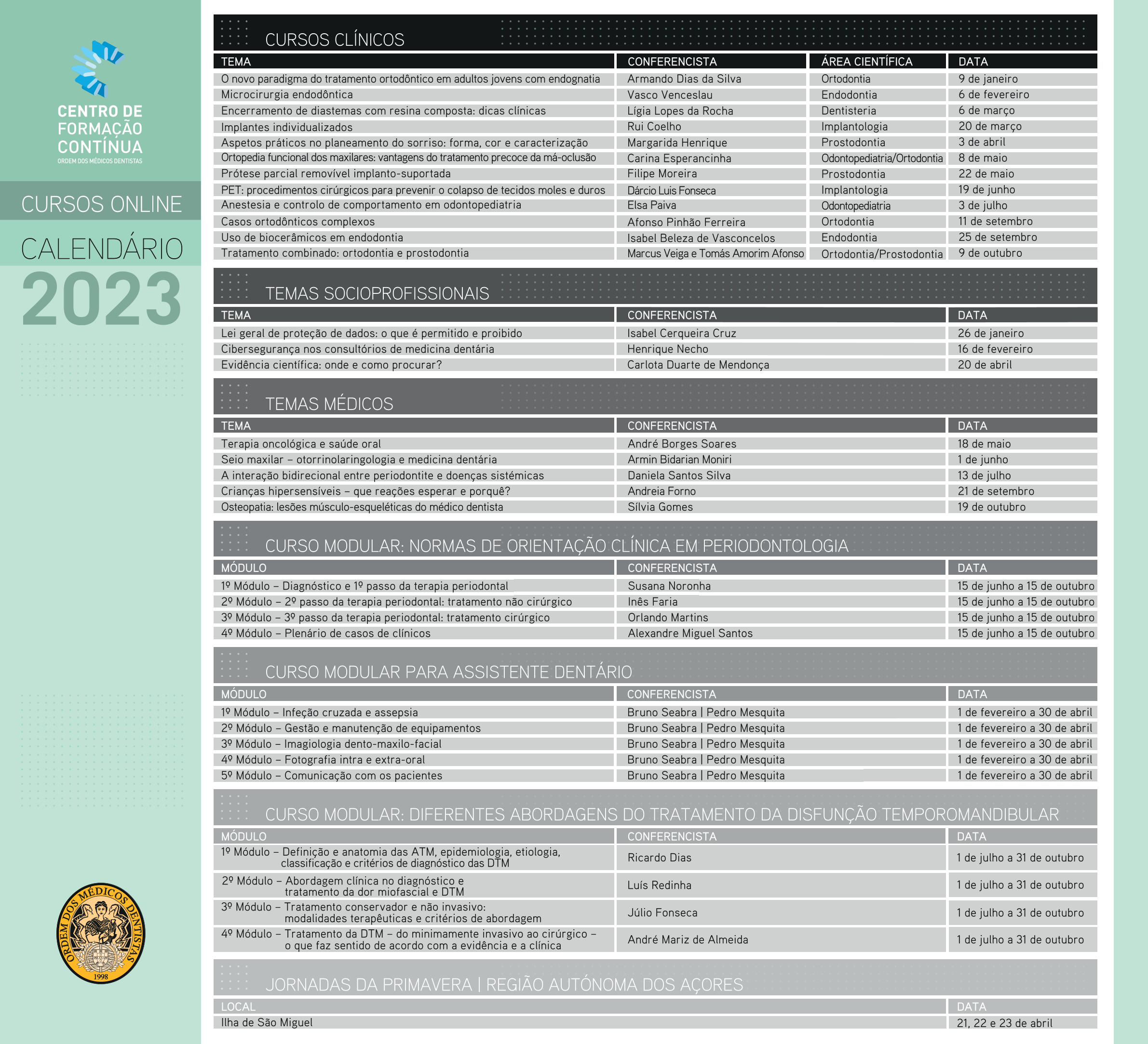 Cursos de 2023 Consultar o programa de formação contínua de 2023 (pdf) Consultar as páginas individuais dos cursos com resumos e formulários de inscrição