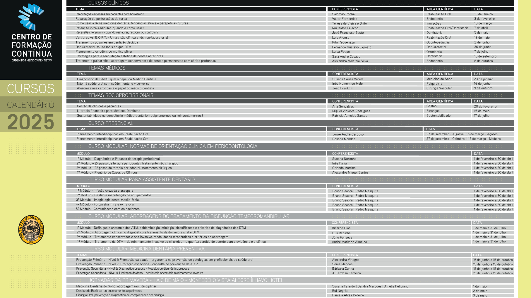 Cursos de 2025 Consultar o programa de formação contínua de 2025 (pdf) Consultar as páginas individuais dos cursos com resumos e formulários de inscrição