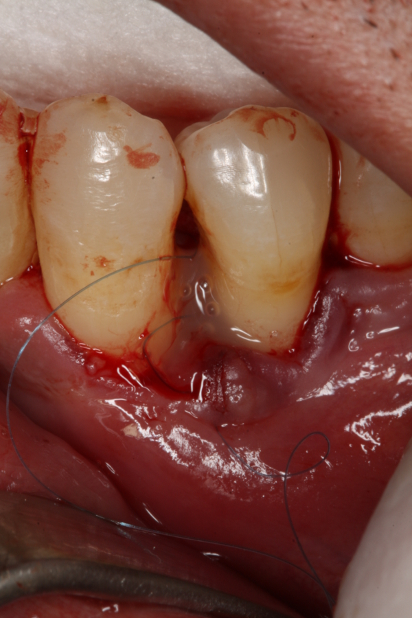 A periodontite é uma doença que leva à perda dos tecidos de suporte dentário. A regeneração surge com o objetivo de restaurar a arquitetura e função dos tecidos lesados promovendo uma nova inserção periodontal. A evidência científica é consensual em determinar que a cirurgia periodontal regenerativa é um procedimento previsível e eficaz no tratamento de defeitos ósseos com indicação para este procedimento. Verifica-se um benefício na diminuição da profundidade de sondagem e no ganho de inserção clínico quando comparada à cirurgia de acesso. A estabilidade dos resultados a longo prazo também é maior.