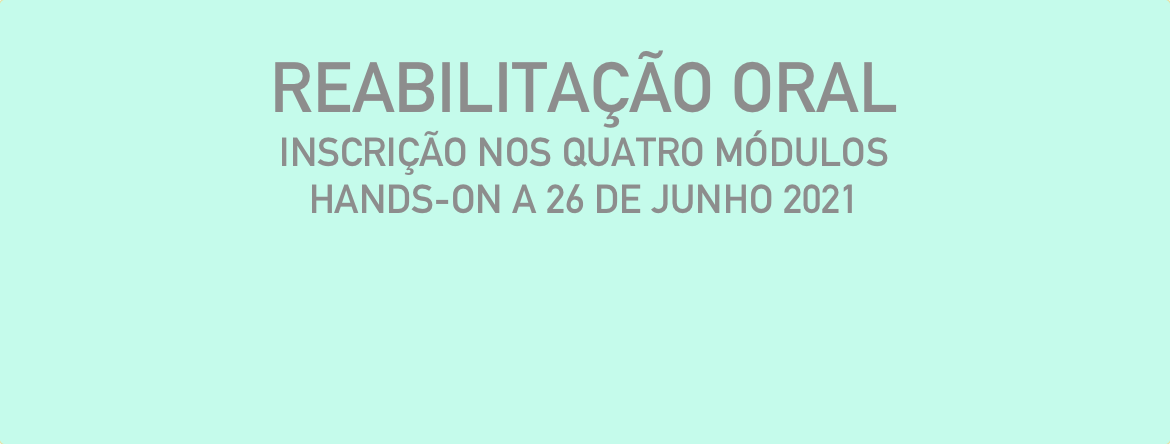 - Reabilitação oral hands-on (4º módulo, data 2, streaming, 26 junho 2021, 09h30-13h00, João Fonseca)