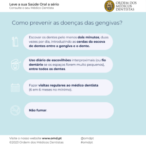 - Fazer visitas regulares ao médico dentista (de 6 em 6 meses no mínimo);
