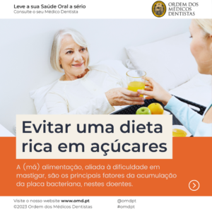 A dieta rica em açúcares e a dificuldade em mastigar são fatores primordiais para a acumulação de placa bacteriana (camada sujidade superficial localizada sobre os dentes e/ou acumulada nas gengivas).