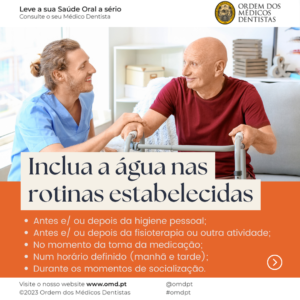 - Incentivar os pacientes com necessidades especiais a beber água e oferecer líquidos em rotinas específicas: