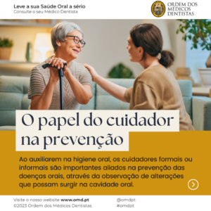 Os cuidadores formais ou informais desempenham um papel importante na prevenção das doenças da cavidade oral, através do auxílio na higiene oral e observação de alterações que possam surgir, quer associados aos dentes ou às mucosas.