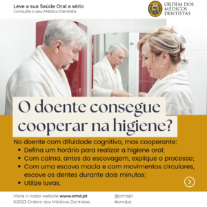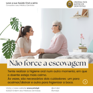 Esta publicação é dedicada a todos os cuidadores formais e informais, com o objetivo de alertar para a necessidade dos cuidados de saúde oral, através de alguns conselhos.
