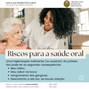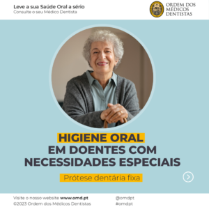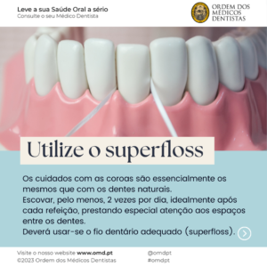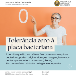 Deve fazer a sua higiene oral, pelo menos, duas vezes por dia, idealmente após cada refeição, prestando especial atenção aos espaços entre os dentes. Nunca esquecer o uso de fio dentário ou escovilhāo.