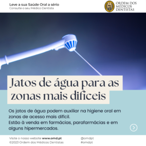 Poderá também usar os jatos de água para auxiliar a sua higiene oral em zonas de acesso mais difícil. Compram-se em farmácias, parafarmacias e em alguns hipermercados.