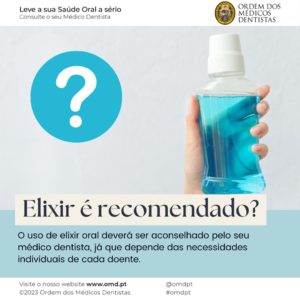 O uso de elixir oral deverá ser aconselhado pelo seu médico dentista, já que depende das necessidades individuais de cada um.