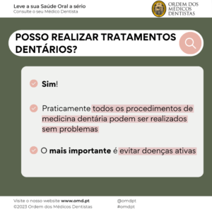 Praticamente todos os procedimentos podem ser realizados. Aliás, é fundamental para a saúde da mãe e do bebé evitar doenças ativas!
